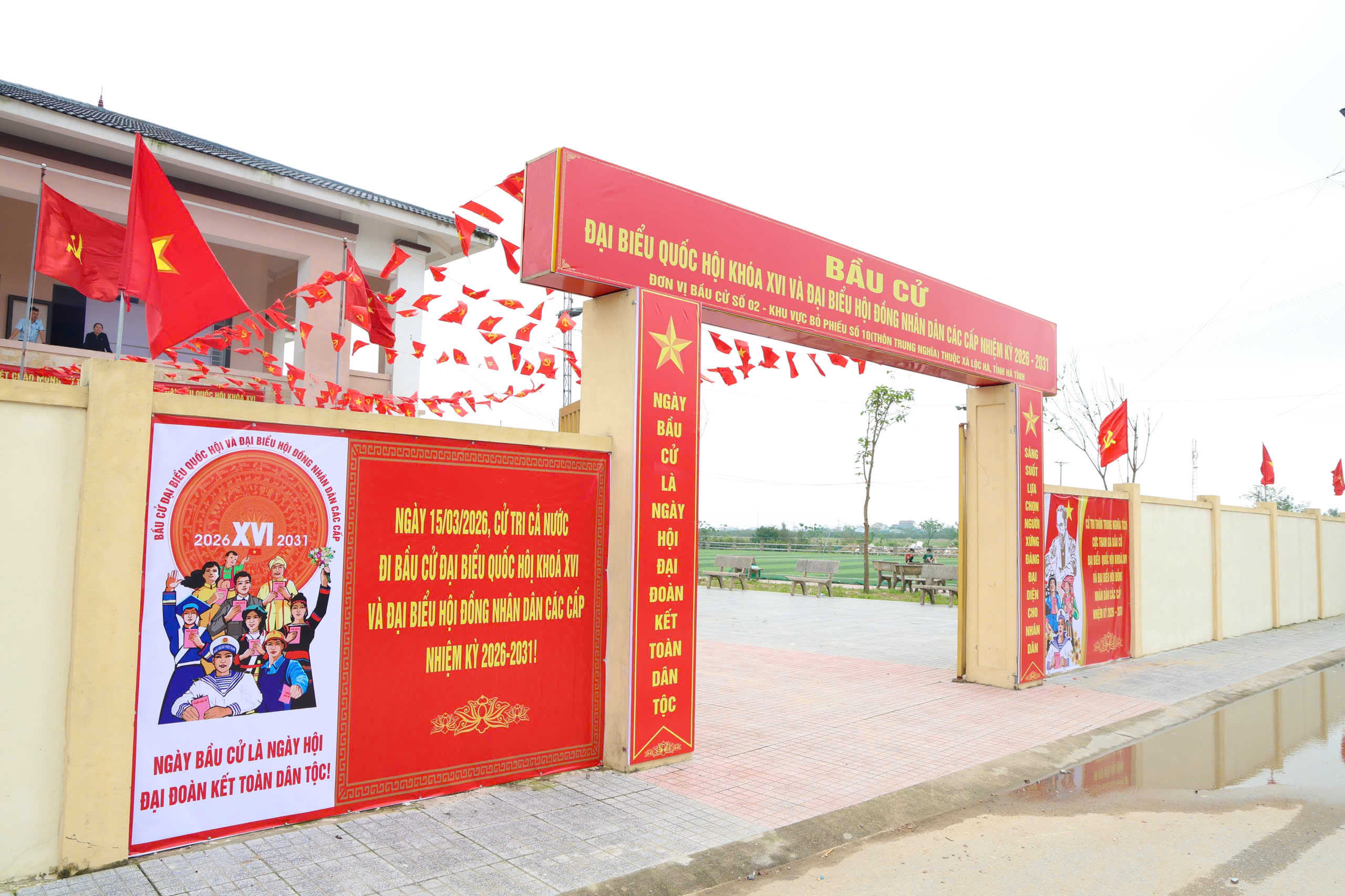 Những ngày này, trên địa bàn xã Lộc Hà, không khí chuẩn bị cho cuộc bầu cử đại biểu Quốc hội khóa XVI và đại biểu HĐND các cấp nhiệm kỳ 2026-2031 đang diễn ra khẩn trương, nghiêm túc nhưng cũng đầy rộn ràng, phấn khởi. Từ trụ sở UBND xã đến từng thôn, đều rực rỡ cờ hoa, băng rôn, khẩu hiệu tuyên truyền, tạo nên một diện mạo mới trên quê hương.