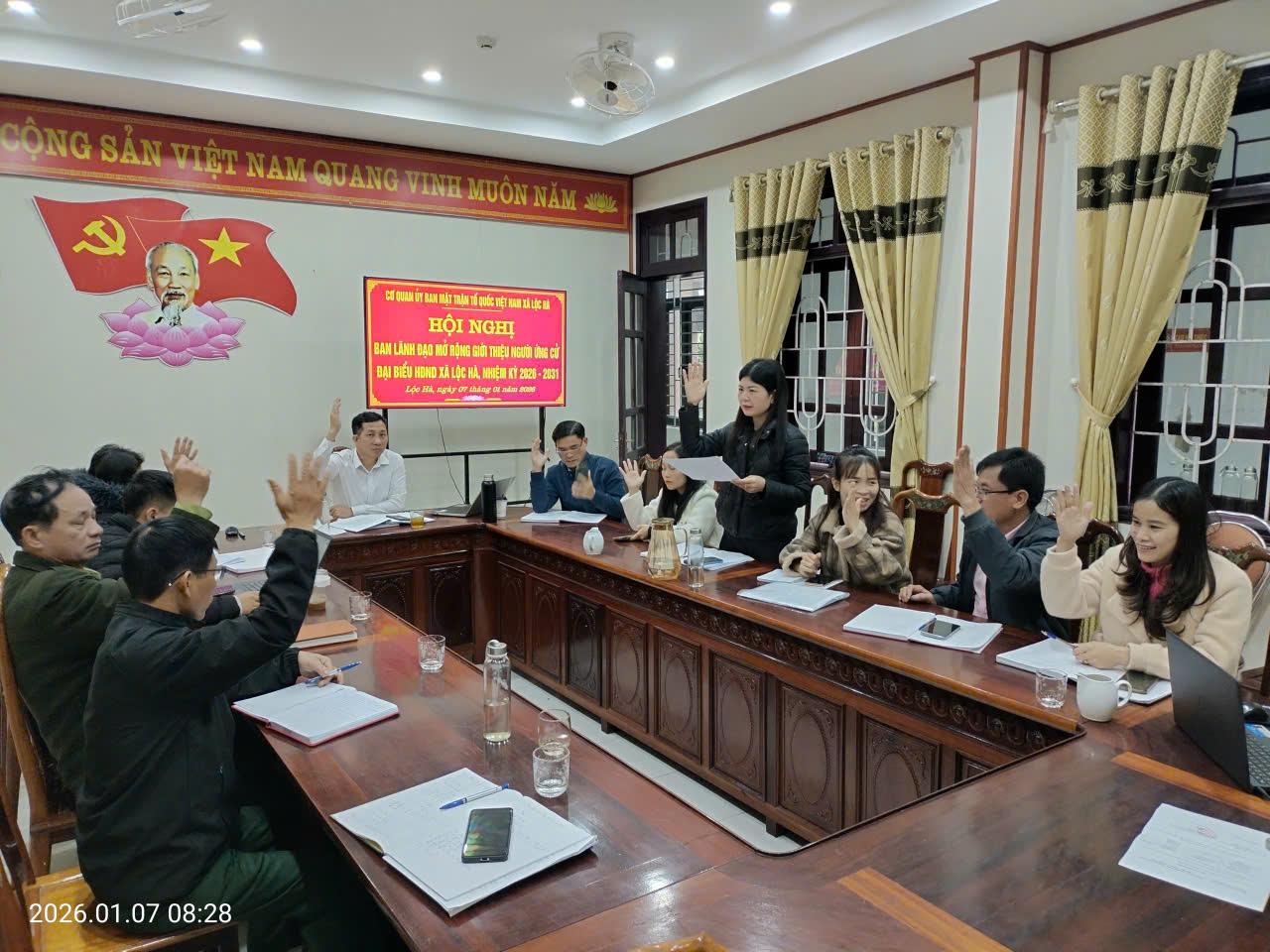 Sáng ngày 07/01/2026, tại hội trường cơ quan UBMTTQ xã Lộc Hà, Cơ quan Ủy ban MTTQ xã Lộc Hà tổ chức Hội nghị Ban lãnh đạo mở rộng giới thiệu người ứng cử đại biểu HĐND xã Lộc Hà nhiệm kỳ 2026–2031.