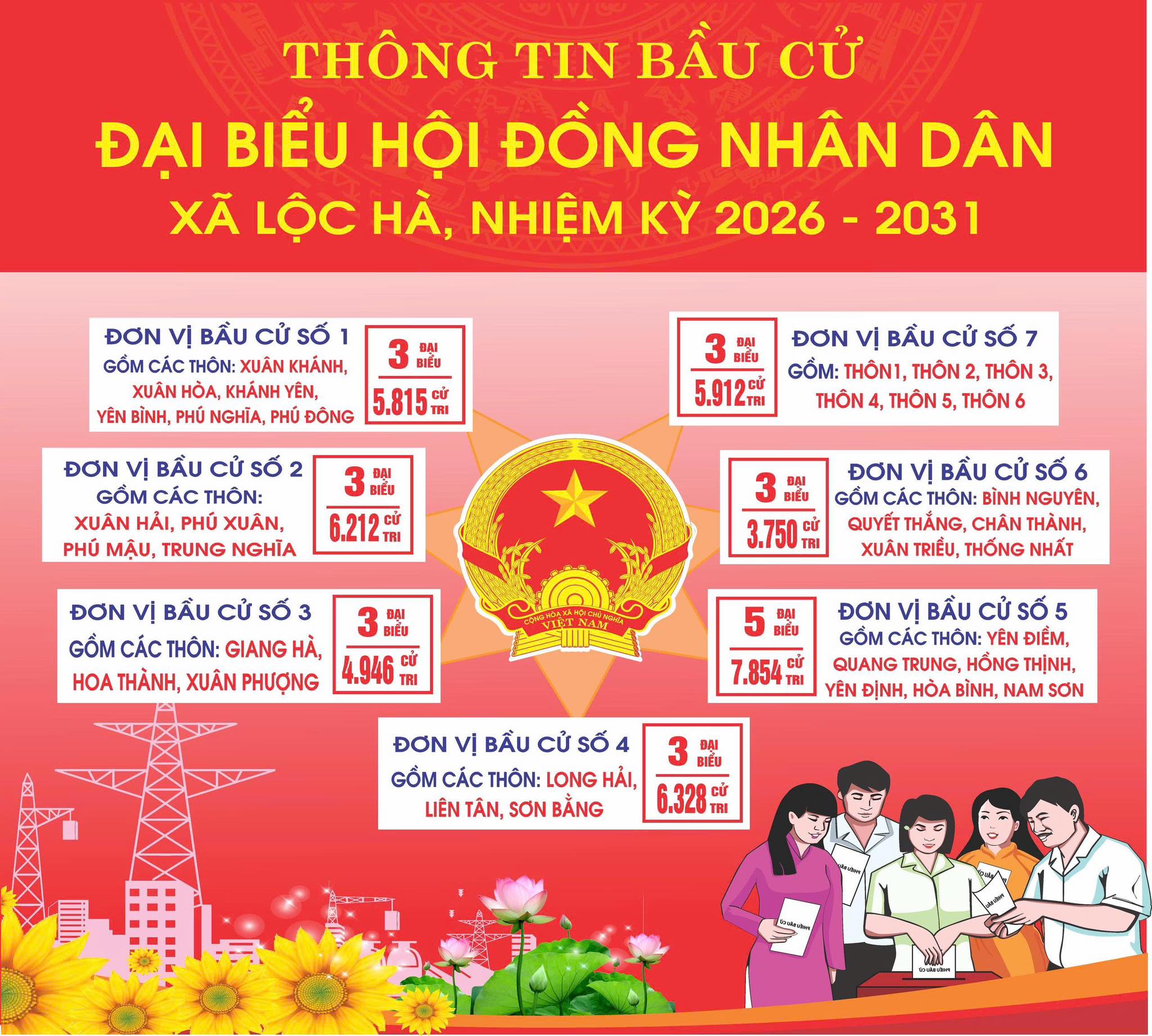 Thông tin bầu cử Đại biểu Hội đồng nhân dân xã Lộc Hà, nhiệm kỳ 2026 -2031Phạm Quang Hiếu31/12/2025A -A+Phạm Quang Hiếu31/12/2025A -A+Lộc Hà ấn định 7 đơn vị bầu cử Đại biểu HĐND xã, nhiệm kỳ 2026 - 2031