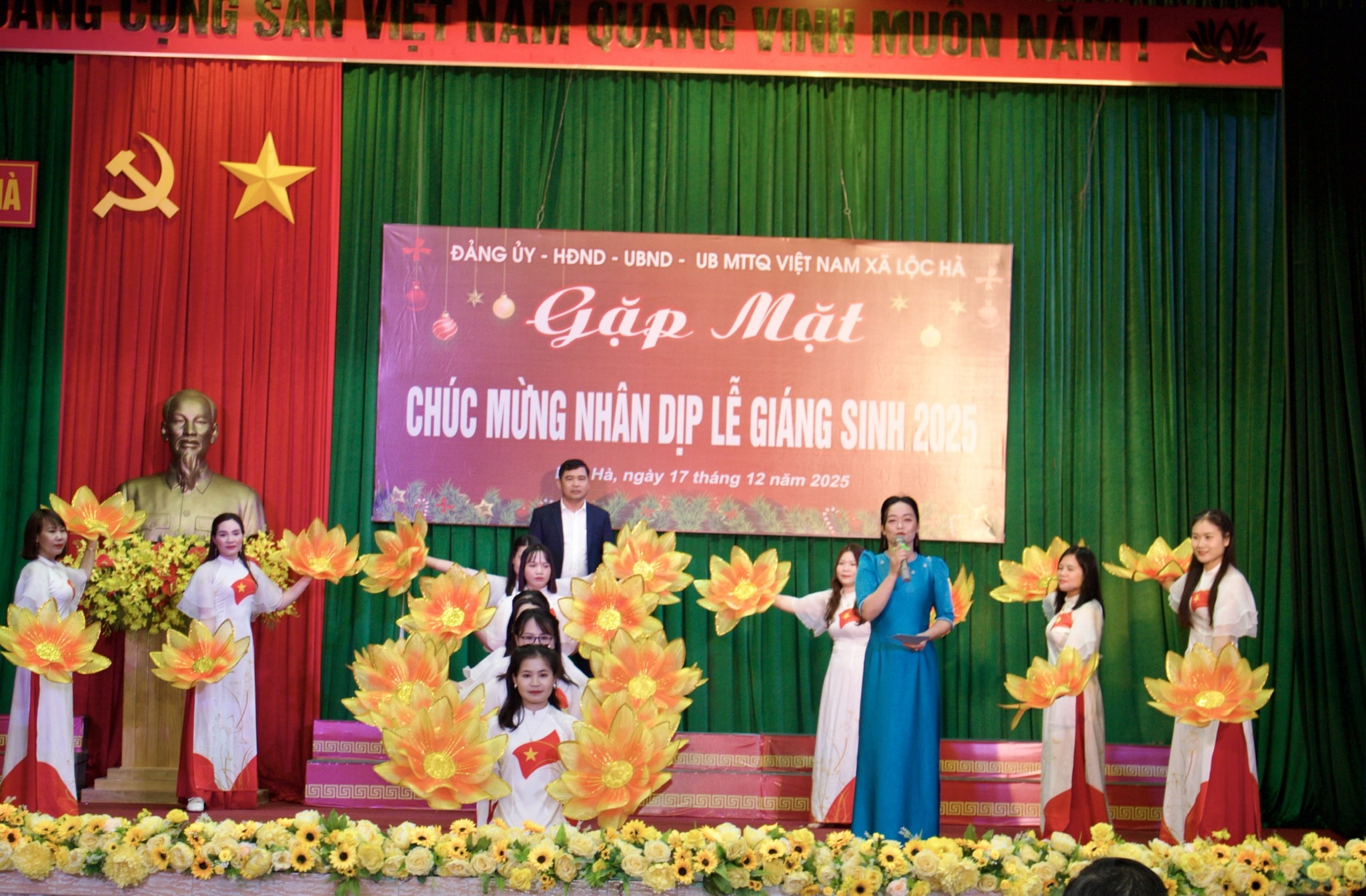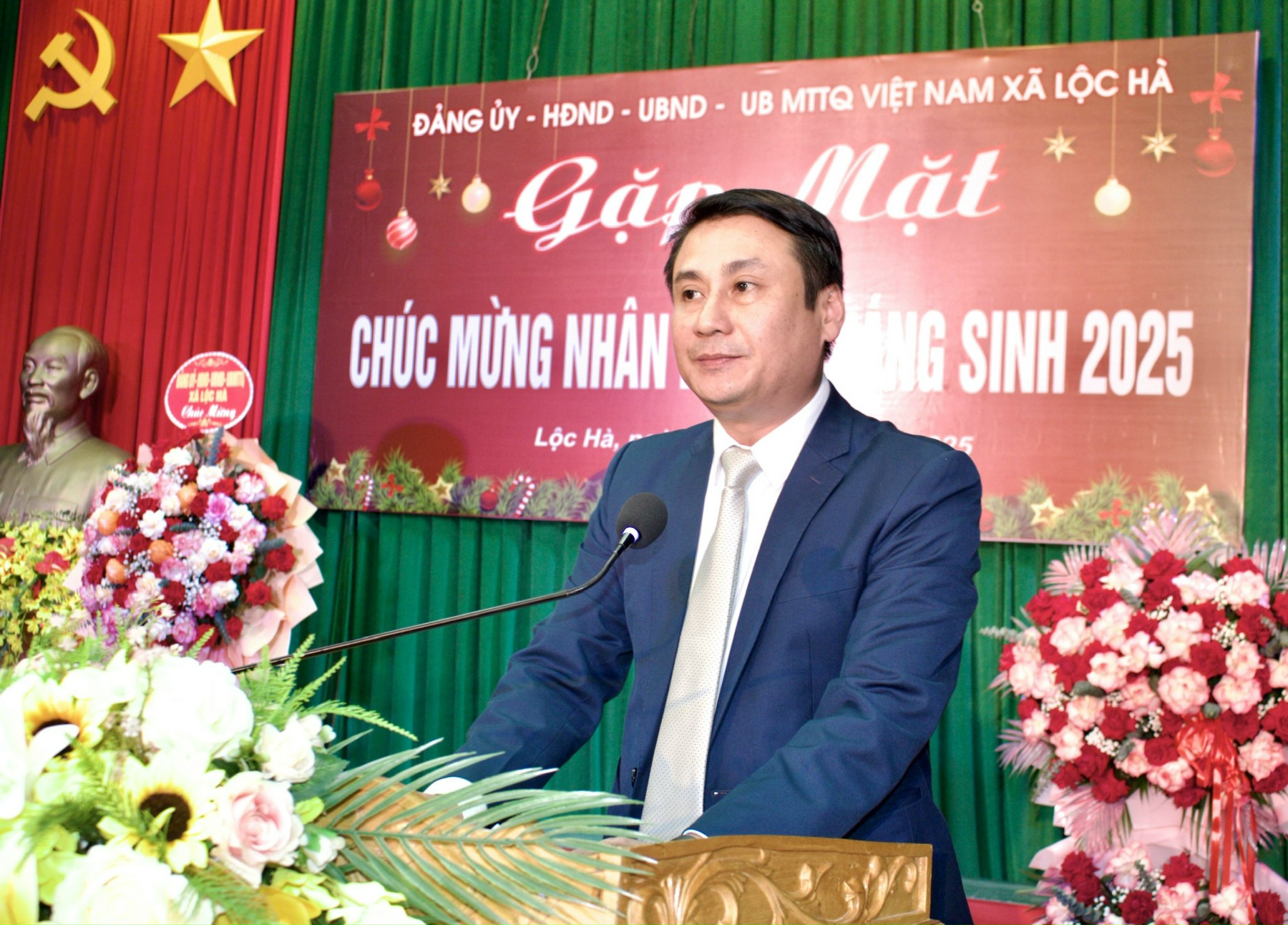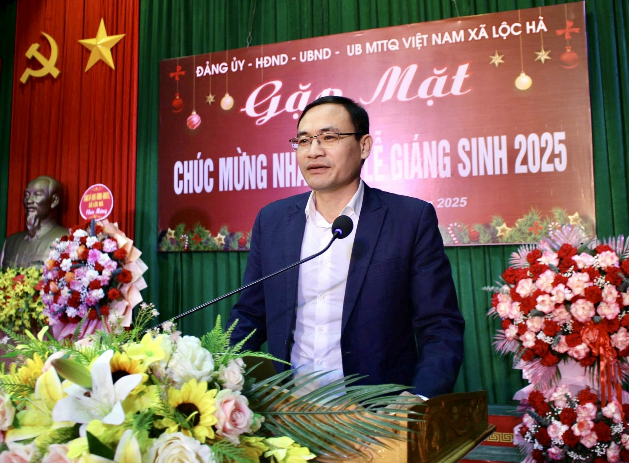 Chiều 17/12, Đảng uỷ, HĐND - UBND, UB MTTQ xã Lộc Hà đã tổ chức buổi gặp mặt chức sắc, chức việc và cán bộ cốt cán vùng giáo trên địa bàn xã nhân dịp lễ Noel 2025. Dự buổi gặp mặt có đồng chí Nguyễn Đình Dũng - Phó Trưởng ban Tuyên giáo và Dân vận Tỉnh ủy; đại diện Sở Nội vụ, đại diện lãnh đạo Phòng PA02 Công an tỉnh. Về phía xã Lộc Hà có các đồng chí: Trần Hữu Thuần - Bí thư Đảng uỷ, Chủ tịch HĐND xã; Nguyễn Thị Hiền - Phó Bí thư Thường trực Đảng uỷ xã; Nguyễn Việt Cường - Phó Bí thư Đảng uỷ, Chủ tịch UBND xã; Đại diện lãnh đạo HĐND, UBND, Ủy ban MTTQ, các ngành, đoàn thể, cùng tham dự có Linh mục Lê Nam Cao - Quản hạt, Quản xứ Trung Nghĩa, đại diện các giáo xứ, giáo họ trên địa bàn xã; các đồng chí Cán bộ cốt cán vùng giáo.